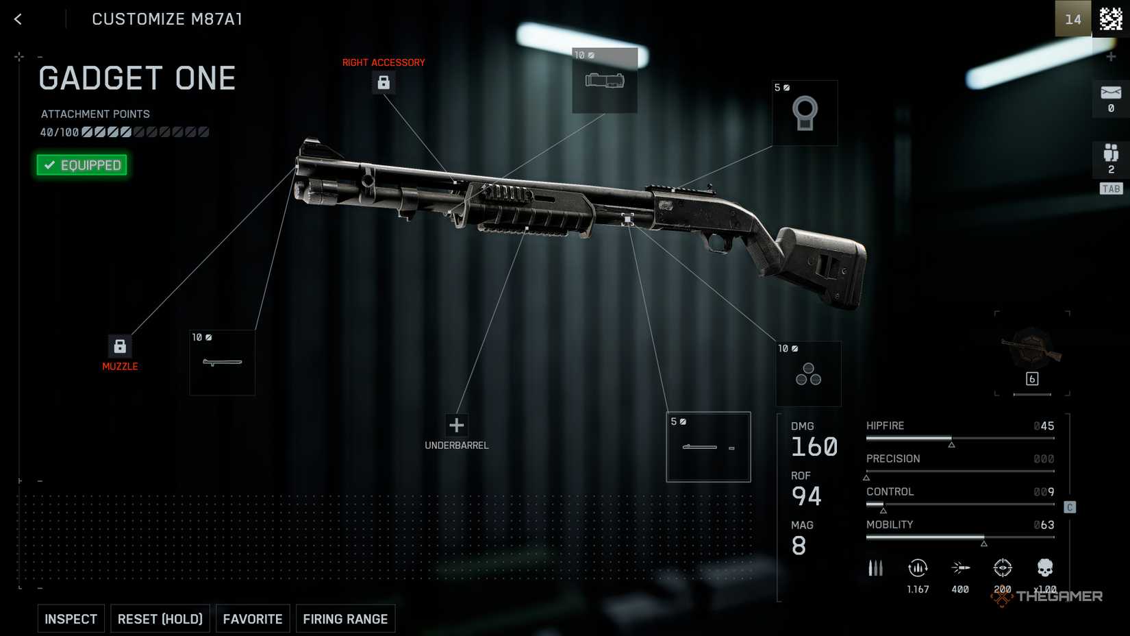 M87A1ショットガンは、バトルフィールド6の大国であり、約10メートルまで選手をワンタップすることができます。このショットガンでキルストリークに行くために添付ファイルは必要ありませんが、この武器を限界に押し上げたい場合、アタッチメントは確かに傷つけません。実行することをお勧めします5mw赤いレーザーより多くのヒップファイアの精度と角度のあるグリップより速い広告時間の場合。ほとんどのアンダーバレルグリップは、このショットガンの広告速度を発揮するため、お気軽に実験してください。