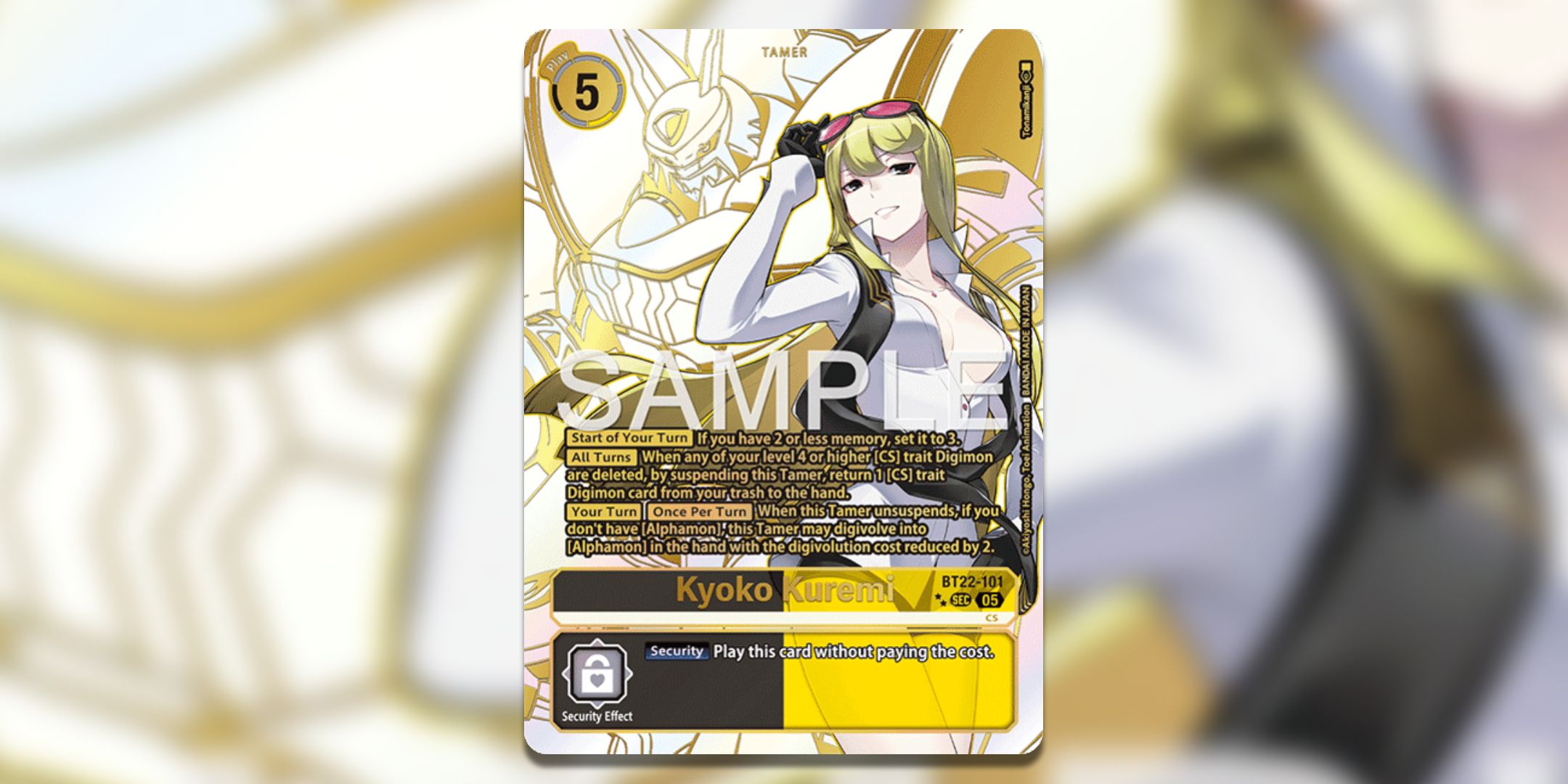 しかし、もしあなたが豪華なフォイルされたカードの上で噴出するプレーヤーまたはコレクターなら、これはあなたの苦労して稼いだ現金を使う人です。オリジナルのサイバースルーゲームを終えていない場合、このカードは少しネタバレかもしれませんが、京子の背後にある恐ろしいアルファモンは信じられないほどに見えます。