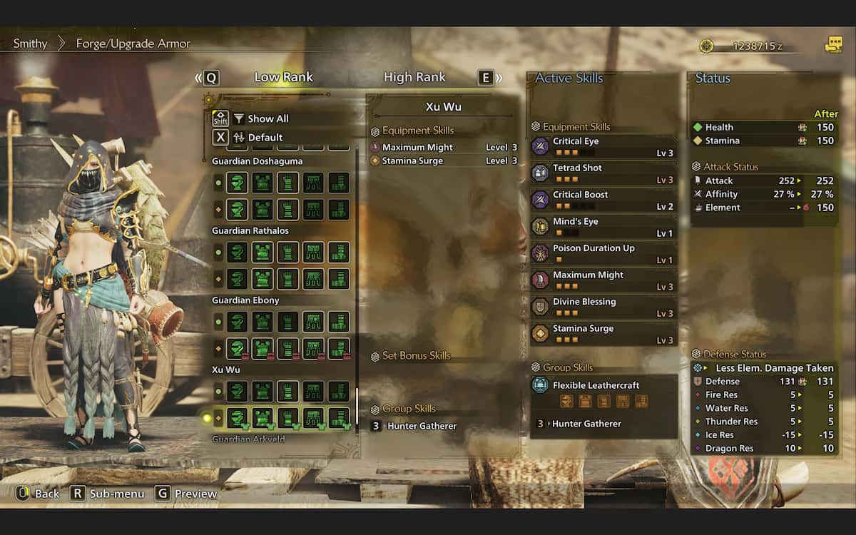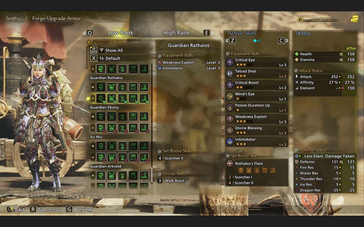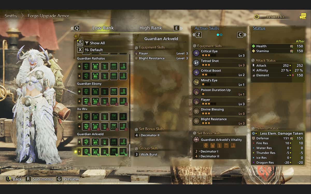 ゲームのフラッグシップモンスターは、すべての低ランク狩りのニーズに最適な鎧を提供します。ガーディアンアークベルドセットは、大きなモンスターを削るのに最適ですフレイヤースキル、傷を負わせるチャンスを増やします。防御的な面で、枯病抵抗レベル3のボーナスがすべての元素速液を完全に無効にすることで、あなたのすべての元素枯病の持続時間を短縮します。