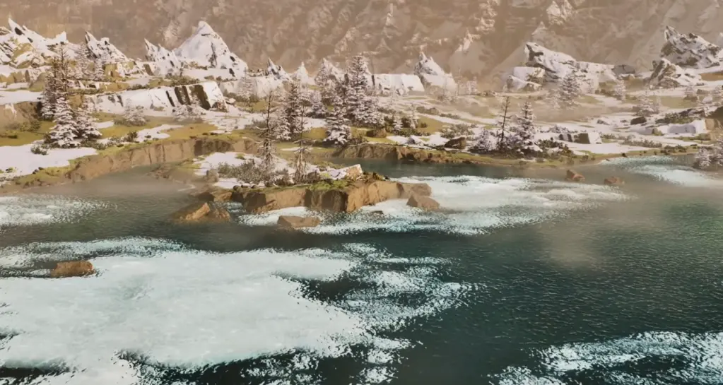 温泉は『ロスト コロニー』のトレーラーで紹介されましたが、雪が嫌いなら素晴らしい場所です。湖の見た目は美しく、周辺地域には資源が豊富にあります。たくさんの生き物にも遭遇します (複数の生き物を飼いならしたい場合に最適です)。この場所には資源や生き物がたくさんいて、雪で凍る心配もありません。