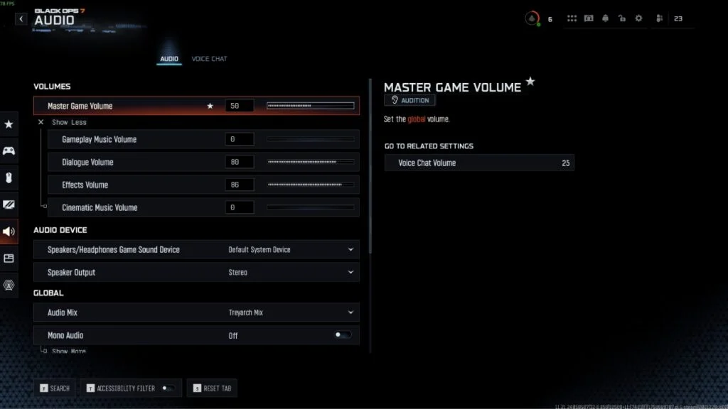 これらは、足跡とゲームプレイのバランスをとるために使用する必要があるオーディオ設定です。必要に応じて、不要なすべての音楽を切り取り、すべての周りからの正しいオーディオキューでずっと粉砕します。
