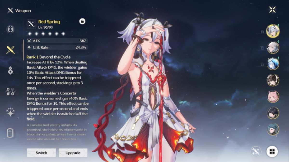 Camellyaの署名武器、赤い春、彼女のキットに合わせて作られているので、はるかに彼女の最高です。最も強力なコンポーネントの1つは、エクイパーが協奏曲エネルギーを使用するために必要ですが、現在、カメルリアはフィールドにとどまる間にそうすることができる唯一のキャラクターであり、それが彼女の最良の選択肢です。