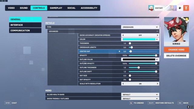 それほどではないように思えるかもしれませんが、特定のヒーローに最適な十字線設定を持つことで、クラッチの瞬間に世界の瞬間に世界の違いを生むことができます。ターゲットをヒットしやすくしたり、発射物を見たり、周囲の領域を見たり、追跡ターゲットやフリック射撃などによりうまく機能したりすることから、すべてを行うことができます。