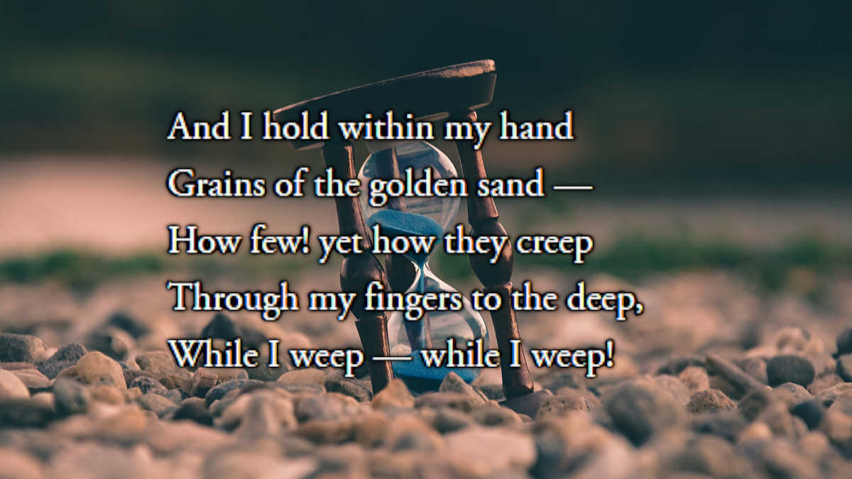 ナレーターは、彼の指の間に滑り落ちる金色の砂について語り、詩を分析した多くの人は、この金色の砂を時間そのものへの言及と考えており、彼がそれに固執しようとすることにかかわらず、ナレーターの指を滑らせます。これは、誰もが年をとるにつれて関係する恐れがあると思います。