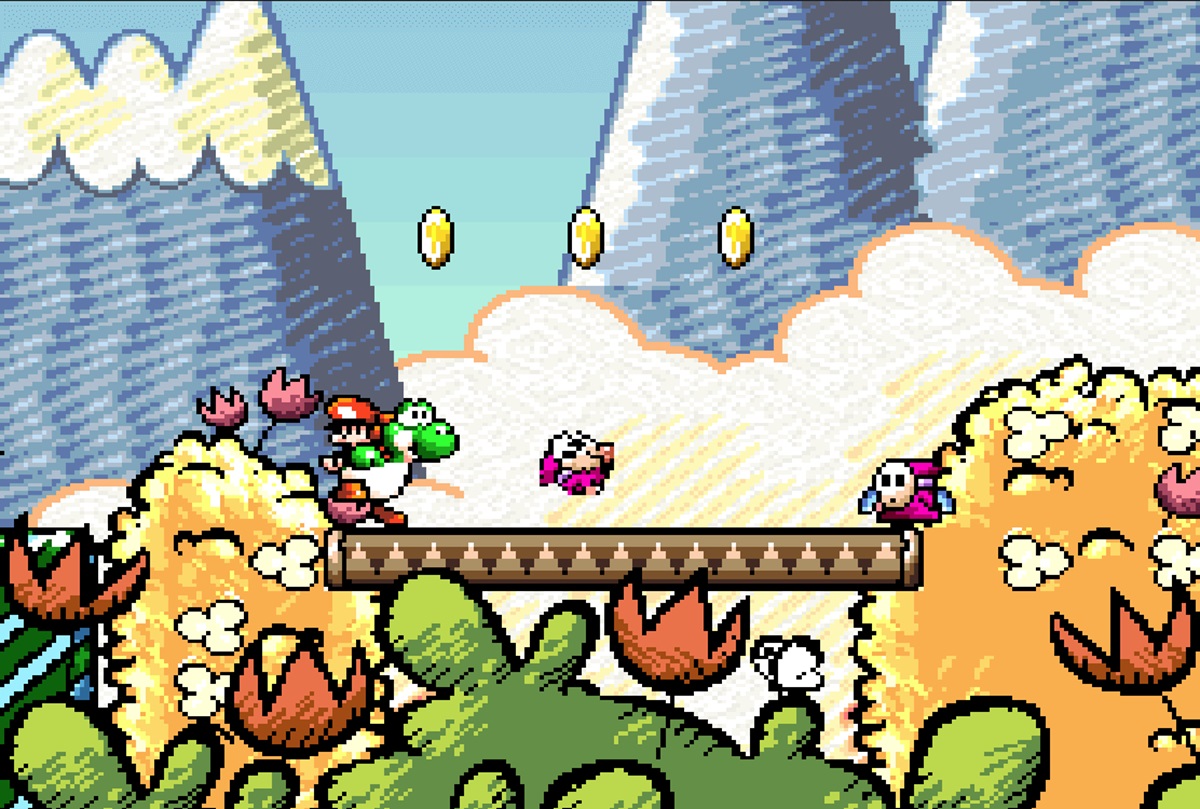 おそらくこのような美しい錬金術のおかげで、ヨッシーの島は今日でも美しく見えます。手描きの外観は、最初にグラフィックを手で描画し、次にデジタルでスキャンしてピクセルごとに近似することで実現されました。前年のドンキーコングカントリーのリリースでは、チームが自分自身を疑っていて、丘のために走って事前にレンダリングされたビデオをいくつか追加しましたが、幸運なことに、グラフィックはそのまま残されました。ゲームプレイは、特にベビーMの叫びのために、時々少し腹立たしいかもしれませんが、30年後には素敵なプラットフォーマーです。ゲームはSNES Classic EditionおよびSwitchで利用できるため、プレイするのは比較的簡単です。