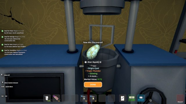 すべての材料が適切な順序で追加されると、最終製品は172ドルの価値があります。これにより、材料のコストがわずか40ドルであり、Granddaddy Purple Weed自体がBUDあたり約5.62ドルであることを考えると、非常に収益性の高いミックスになります。つまり、合計45.62ドルを費やして172ドル相当のものを生産し、これをスケジュール1で利用できる最高のミックスの1つにしています。