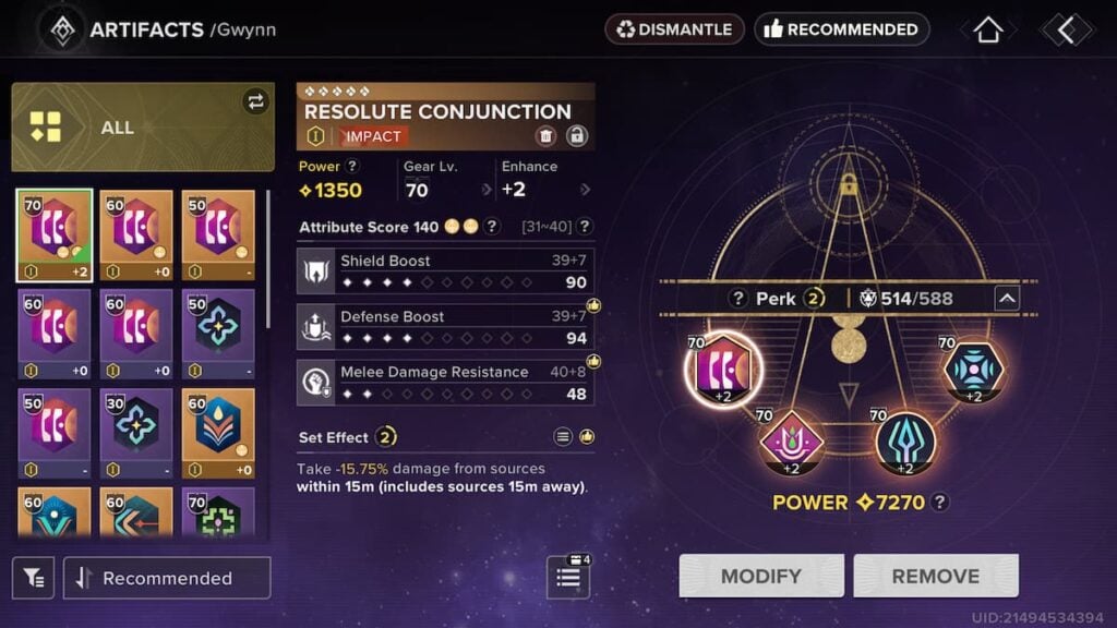 属性に関しては、1番目と2番目のスロットのアーティファクトは防御統計をロールすることができ、3番目と4番目のアーティファクトは攻撃的な統計をロールすることができます。最初の2つのスロットで抵抗と一般的な防御を高める統計を取得することを目指します。攻撃の場合、能力の損傷を増やすための統計は必須です:能力強度、署名ブースト、スーパーブースト。 Gwynnの武器の習得を最大限に活用すると、武器の強化がより便利になり、特に2つの空白の武器が装備されている場合は、Void Boostもまともです。