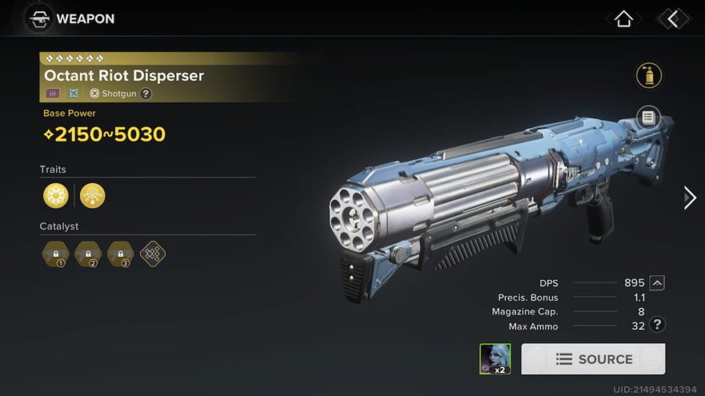 オクタント暴動分散器ガントレットのエキゾチックなショットガン:猛攻撃です。猛攻撃は運命に相当する襲撃であるため、得るのは難しいかもしれません。