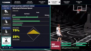クイックリリースでジャンプショットを完璧にタイミングできる場合は、リリース速度が高速なジャンプショットアニメーションに適しています。客観的に、これは、クイックリリースがあれば、ディフェンダーがショットを締めくくる時間がないためです。主観的に言えば、プレーヤーはクイックリリースに慣れていないタイミングを逃し、とにかくショットを見逃します。これが、プレイスタイルに最適なショットを作成してほしい理由です。