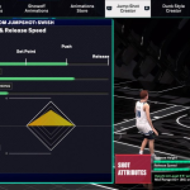これらのショット属性に従ってカスタムジャンプショットを調整します。ジャンプショットの作成を開始したら、いくつかのベースから選択してアニメーションをリリースします。好みのプレイスタイルを持っているものを探してください。 Stephen Curryのようなクイックジャンプショットが好きな場合は、まともな高さ、DEF免疫、安定性のリリース速度に集中したいと思います。