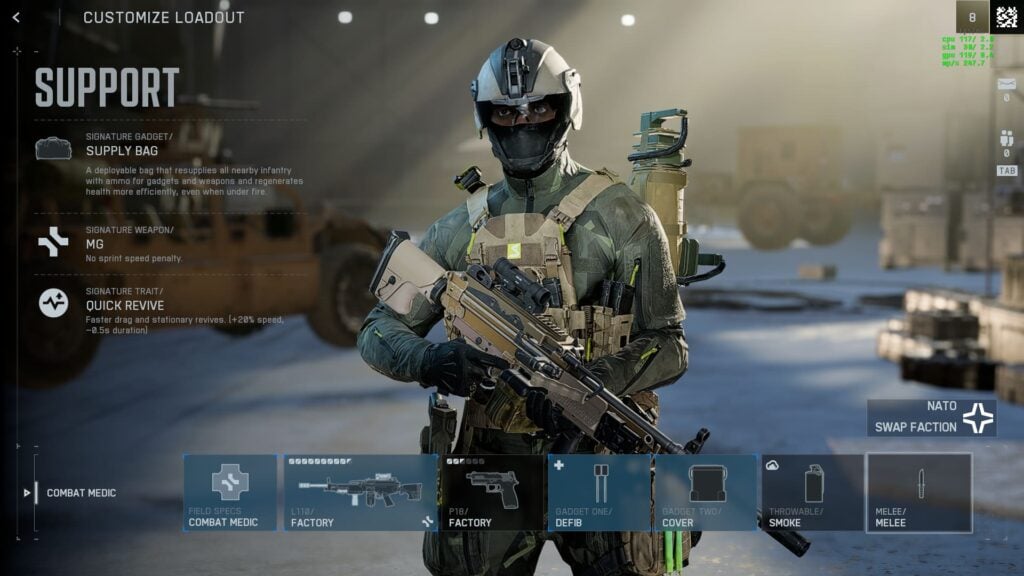 LMGはサポートクラスの署名武器であるため、L110を使用する際にはサポートを実行することを強くお勧めします。これにより、スプリント速度のペナルティは完全に避けます。今のところ、Combat Medicはベータ版で利用可能な唯一のフィールドスペックですが、それでも堅実なピックであり、フルリリースでより多くの専門化が解除された場合でも、実行可能なままです。