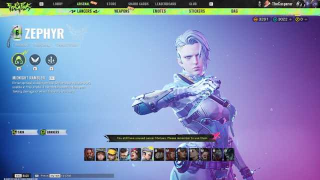 - フェードアウェイ - Zephyrが真夜中のRamblerの下で完全に見えない場所を作成します。不可視性は永続的になりますが、攻撃すると混乱します。