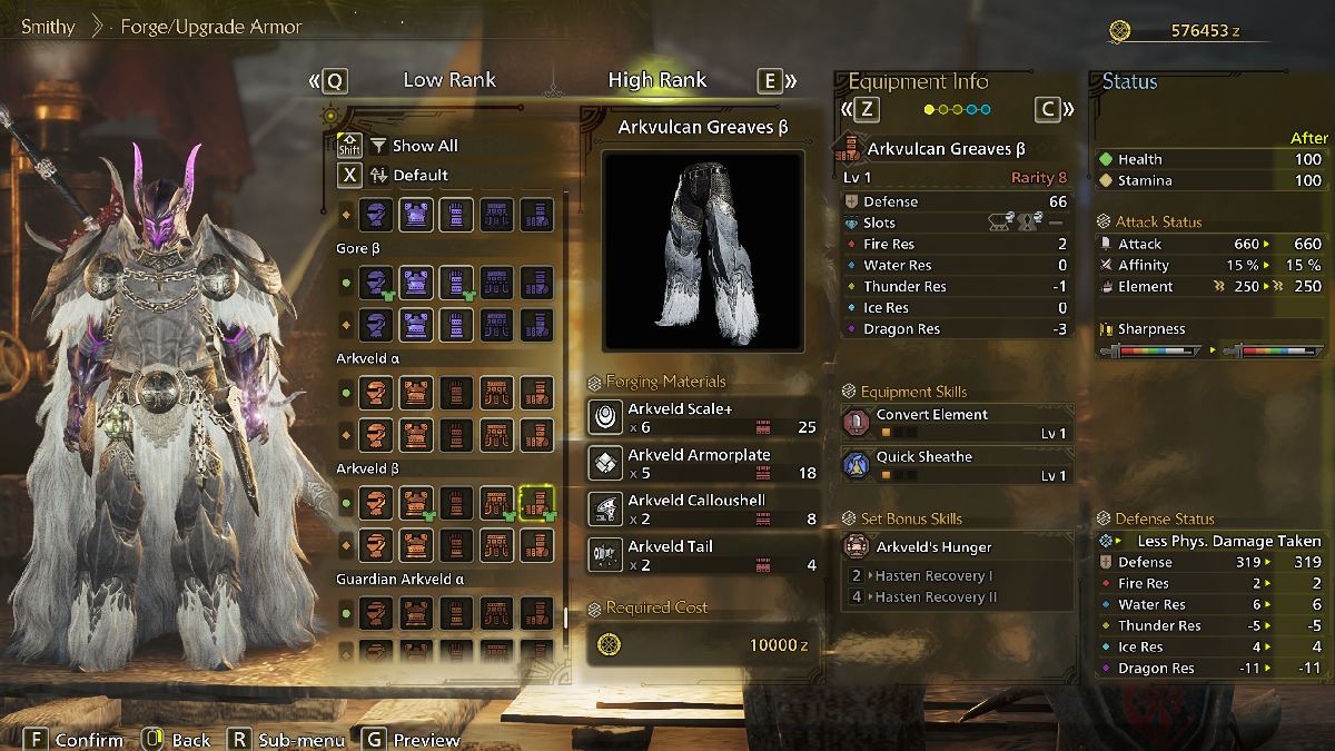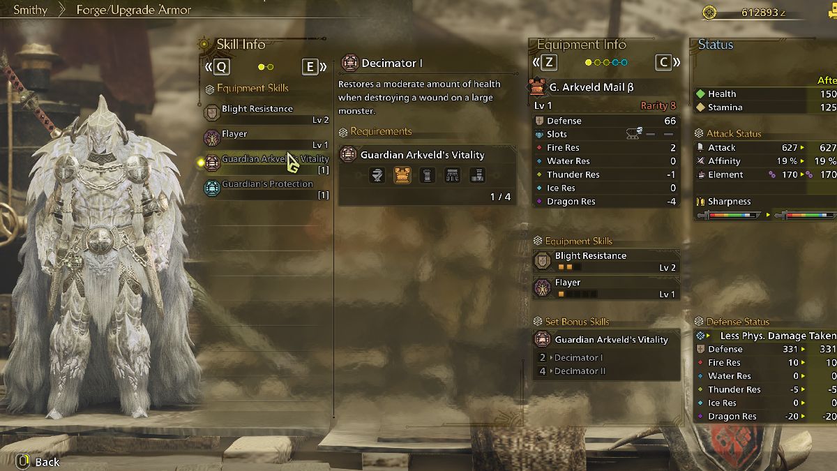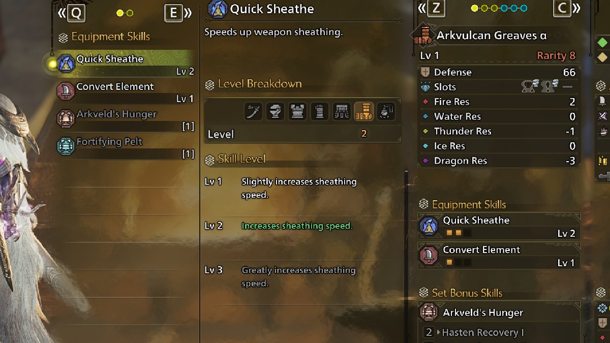 Arkveld Armourセットは、傷に対する親和性を高める衰弱なエクスプロイトを与えます。ゴア・マガラの2つのマガラの作品が、ゴア・マガラの専制政治愛好家に選ばれました。ただし、狂乱を克服すると、さらに15%の親和性が得られます。武器のベースと組み合わせて20〜30%の親和性。アーマーピースはすべてベータバージョンであるため、装飾用の追加スロットがあります。ただし、非常に重要なクイックシースレベル2を提供するArkvulkan Greavesを除きます。