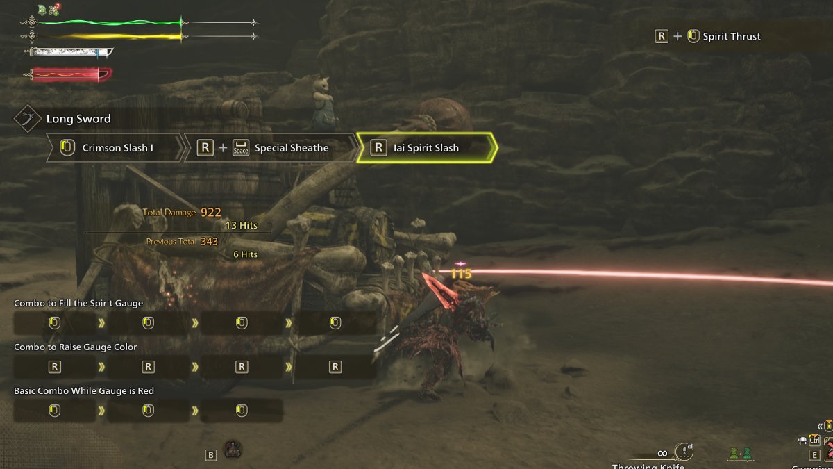 - レッドスピリットゲージメーターを最適に使用する方法:スピリットリリースのスラッシュは非常に強力ですが、レッドスピリットゲージ状態は、モンスターハンターワイルドの以前よりもはるかに強力です。標準的なスピリットスラッシュコンボと定期的なスラッシュコンボストリングを実行しながら、レッドメーターがあり、ゲージレベルが大量にダメージを与えているときに使用します。
