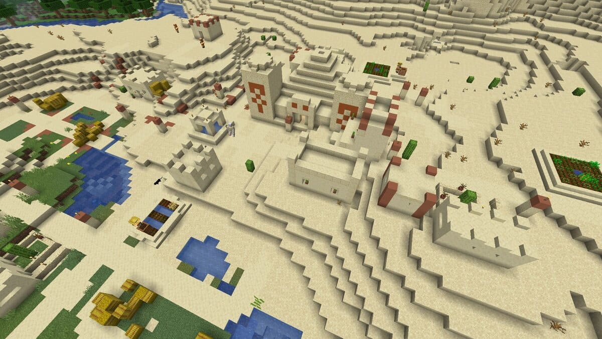 水中ベースを構築したい場合は、この種よりも良い機会はありません。座標-2100、-4550では、すぐ下に露出した拠点がある海の寺院があります。本土もかなり近く、座標-2400、-4900では、砂漠の村と砂漠の寺院が互いに非常に近くに立っています。
