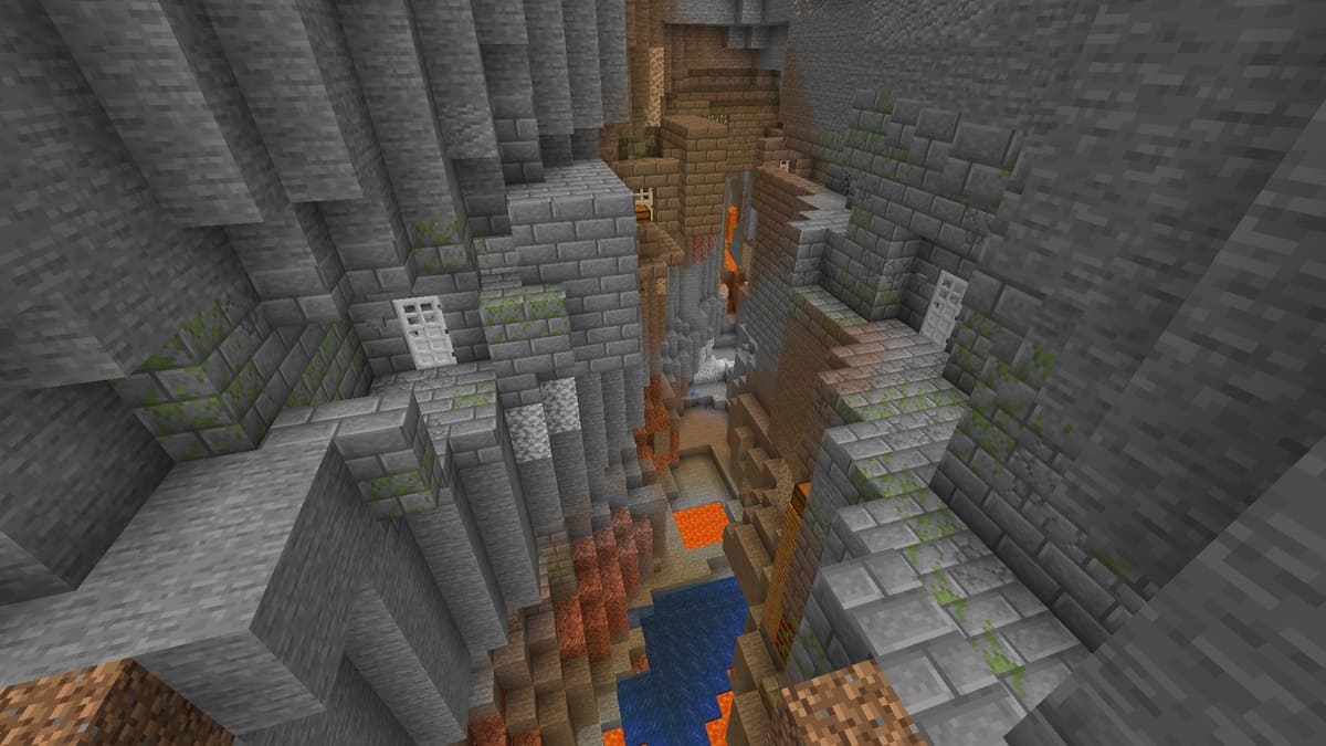 雪の村と、座標250、-150に立つイグルーのすぐ隣にスポーンします。イグルーには、金でいっぱいの胸がある地下の宝室があります。しかし、そこで止まらず、掘り続けないでください。すぐに、あなたは数百平方ブロックの領域をカバーする放棄された鉱山シャフトに陥ります。