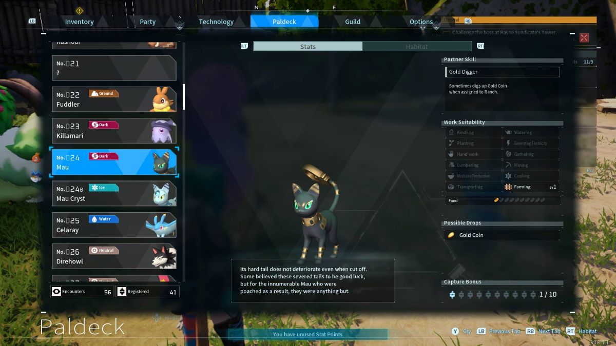 ロックを解除したら牧場レベル5では、マウはパルワールドのあなたの基地に必須の仲間です。標準のダークタイプPALとその結晶バリアントドロップの両方金貨いつ放牧、そして、資金は一度に数人の仲間が歩き回って速く積み重ねます。必ずてくださいジョブを割り当てます特に牧場で。そうでなければ、それは時々あざけりにさまようでしょう。