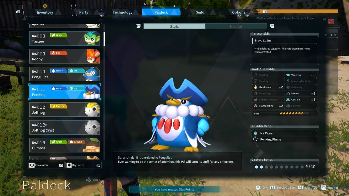 現在、ペンキングはパルワールドの私の基地の原動力です。私は自分がどれほど幸運だったかを知りませんでしたhatch化したaからのこの水/氷型pal大きな湿った卵早い段階で、しかし、私はさらに多くの仲間を捕まえた今、私のトッププロデューサーのままです。装備されていますレベル2の適合性輸送、手仕事、マイニング、散水、 そして冷却- 確かに重いリフター。