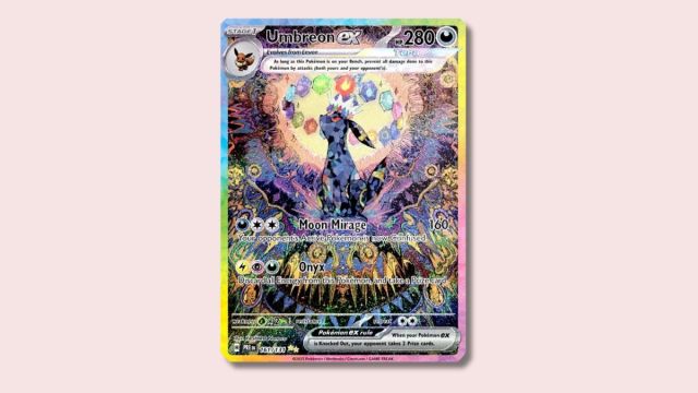 リストは、悪名高い進化する空とプリズムの進化の比較を開始したカードなしでは完成しません。 Umbreon Exは、コレクターの作品の万華鏡のような宝石ですが、トーナメントプレイの最も実行可能なEeveelutionsの1つでもあります。