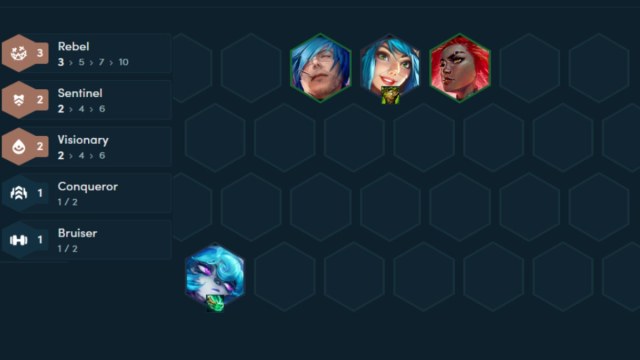 ゲームの早い段階で、最初の2つの段階で、基本的な3反乱特性をアクティブにします。 Vex、Ireliaなどのユニットの魚、そして早い段階で設定します。ここではアカリを手に入れることも素晴らしいです。 Vexは、Zoeの優れたアイテムホルダーを作成するため、初期のゲームでのみ使用されます。これらの4つのユニットすべてをプレイしたり、StebやSentinelのようなブルーザーを歌って、それぞれの特性を活性化することができます。