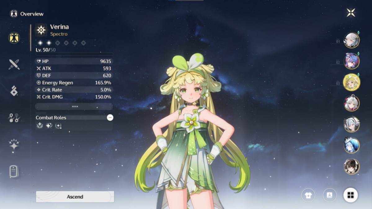 Verinaはゲームで2番目に良いサポートバッファーですが、一部のチームコンプでは、彼女は絶対に最高です。彼女はShorekeeperのような批評の価値を高めませんが、彼女はそれを補い、癒しが大幅に強く、ATK%バフを大規模に補います。彼女の協奏曲のローテーションは、特にS2でのゲーム全体で最も速いものの1つであり、イントロベースのチームメイトを迅速に可能にし、チームを最高の形に保つことができるようにします。彼女はまた、低ダメージの調整された攻撃を提供しています。これは、特定の作曲のゲームチェンジャーになる可能性があります。何よりも?彼女はキャラクターセレクターを通じて自由に入手できます。すべてのプレイヤーはゲームの開始時に与えられ、どのプレイヤーにとっても簡単な推奨事項になります。