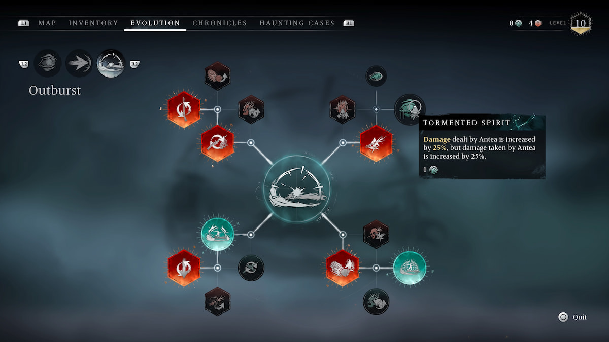 Anteaを新しい形で再会するとすぐに、Evolution Skill Treeは解除され、発表能力から始まります。ここでは、スキルとエッセンスポイントを費やして、新しい能力とパッシブボーナスを購入できます。ロックを解除する最初の3つのコアツリーは、発表、跳躍、爆発です。