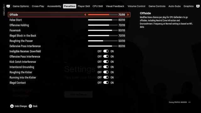 マッデンフランチャイズでは、デフォルトのペナルティスライダーが常に間違っています。スライダーでそれを修正することを目指しています。以下に、各ペナルティがある必要がある正しい数値を示します。これは、NFLで実際に発生する頻度を表しています。