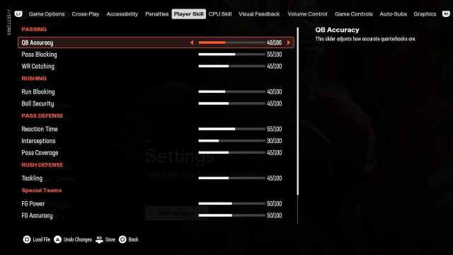 Madden NFL 25の一部のプレーヤースキル設定は、デフォルトでは簡単すぎるか困難です。公正なままでいる間、フィールドの強度を高めるために、次の調整を行います。