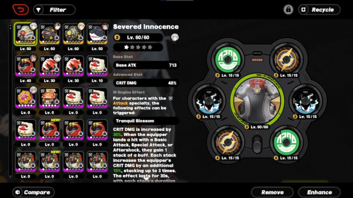 - 無罪の切断:これはAnbyのBis W-Engineであり、彼女を念頭に置いてカスタムメイドです。それは彼女に大規模なものを提供します78%クリティカルDMGAnbyが基本的な、特別な攻撃でターゲットを攻撃すると、さらにバフされます。このバフは3回スタックし、3つのスタックでさらに20%の電動ダメージを与えます。