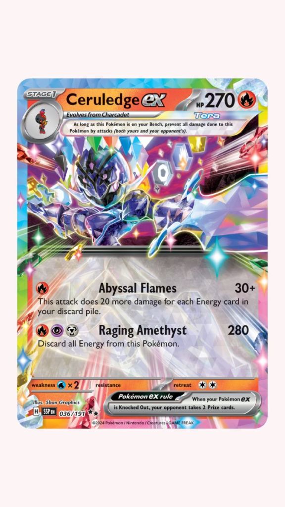 Ceruledge Exは、スパークを急上昇させることによる最大のスタンドアロンデッキの1つである可能性があります。それはエネルギー廃棄ゲームのゲームスタイルに分類され、レイジングのアメジストが大きなダメージを与え、エネルギーを破棄し、アビソサルの炎が破棄山のあらゆるエネルギーで動力を供給します。