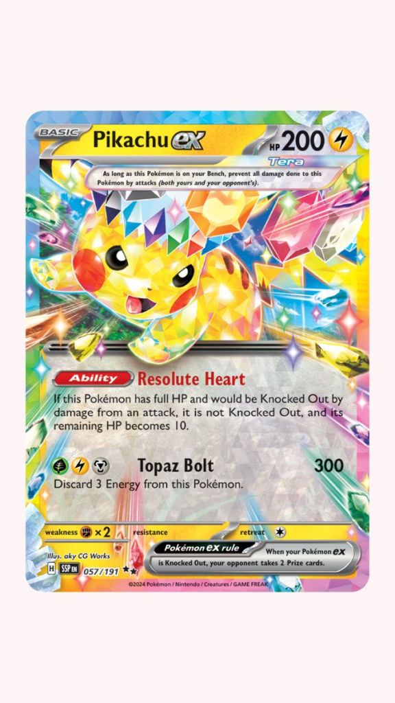 | 断固とした心 | n/a | Pikachu Exが完全なHPを持ち、相手の攻撃によってノックアウトされると、スキップがノックアウトされ、10 hpになります。 | n/a |
