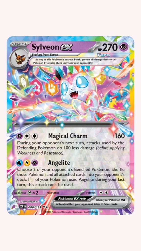 Sylveon Exは、多くの既存のポケモンTCGデッキに収まる可能性があります。アンジェライトは無限に有用な動きであり、対戦相手が正常に設定し、その過程でテラパゴスExやGardevoir Exのようなデッキに対抗することができないようにします。