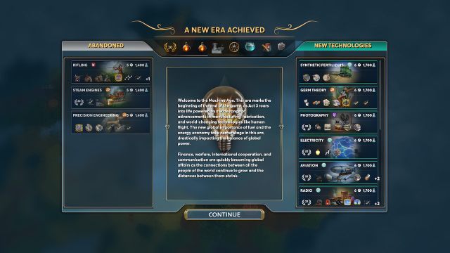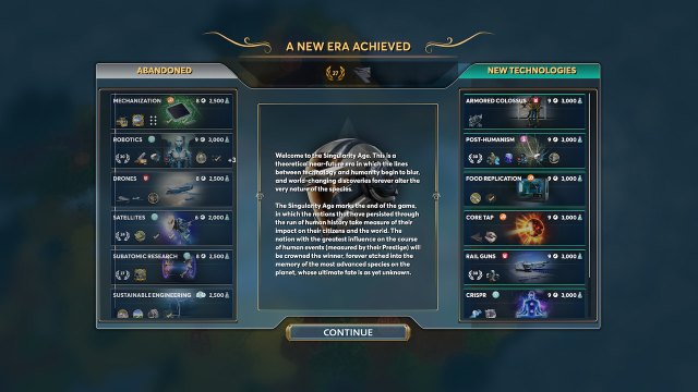 特定のルートを選択し、できるだけ早く最終時代を通過することに焦点を当てているのか、テクノロジーを通じてより多くの名声を確保するためにもう少し時間をかけるかどうかはこれまでのところ、あなたがどのようにあなたの国を管理したか。