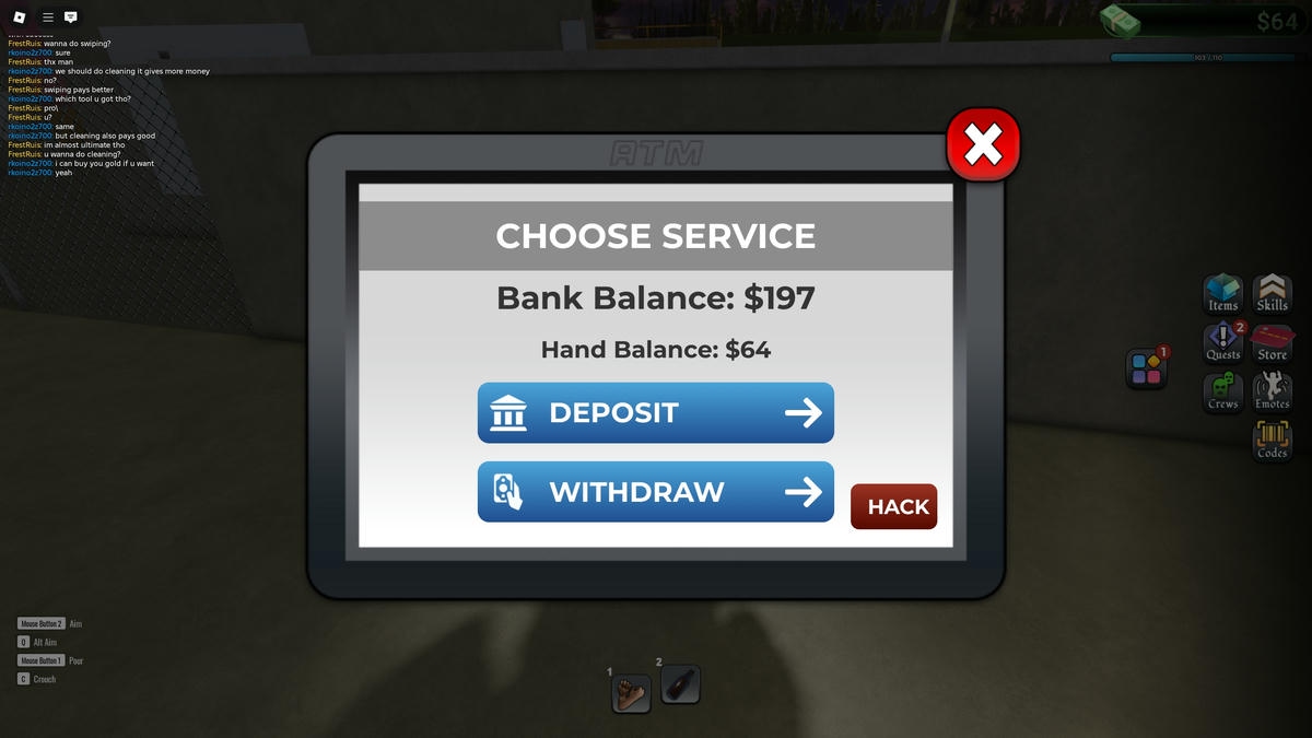 ロビーで他のプレイヤーと戦って仕上げることは、彼らが運んでいる現金の一部を手に入れる簡単な方法です。純粋に聞こえますが、できます新しいプレイヤーを打ち負かす労働雇用(管理人、料理人、または棚のストッカー)と収入を略奪します。同時に、自分に現金を持ちすぎないでください他の誰かがあなたからそれをつかむかもしれないように。頻繁にATMを使用し続けますデポジット苦労して稼いだか盗まれた現金。