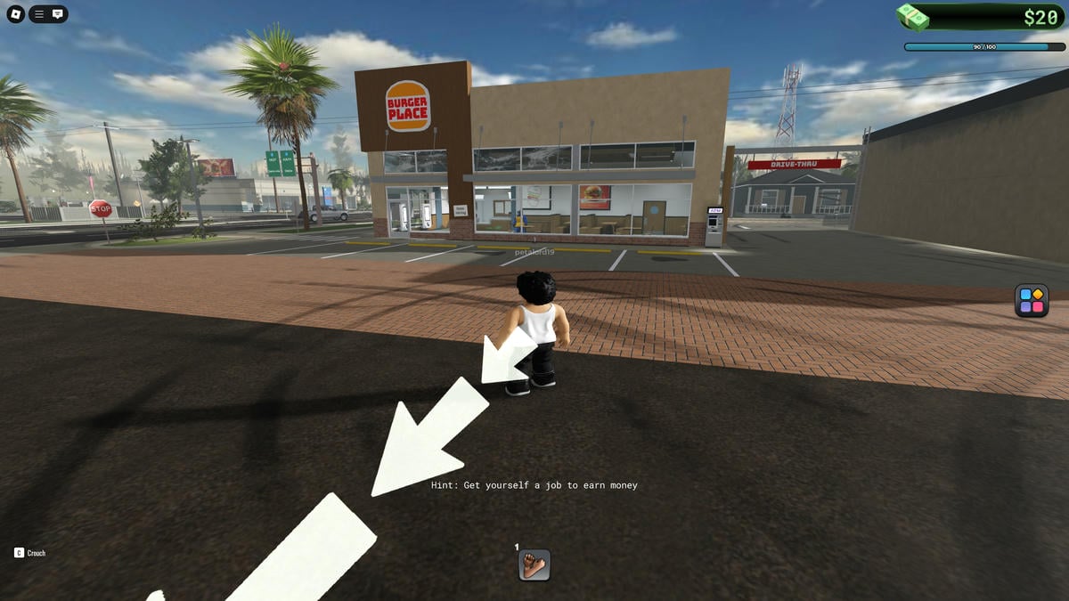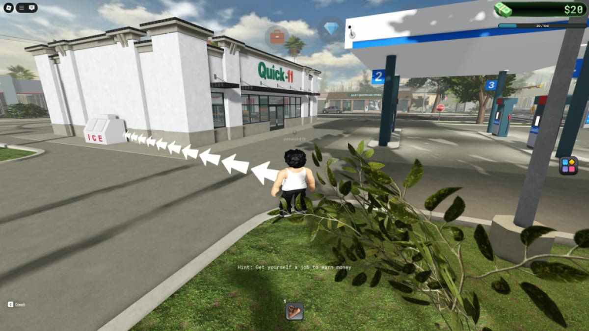 ブロックスピンで作業できる3つの主要なジョブがあります。Burger Placeの管理人、Quick-11の棚ストッカー、肉屋のカットで料理。上記の画像に各建物を見せました。これらの建物のいずれかを訪れて、青い円でジョブボードの隣を歩いて作業を開始します。