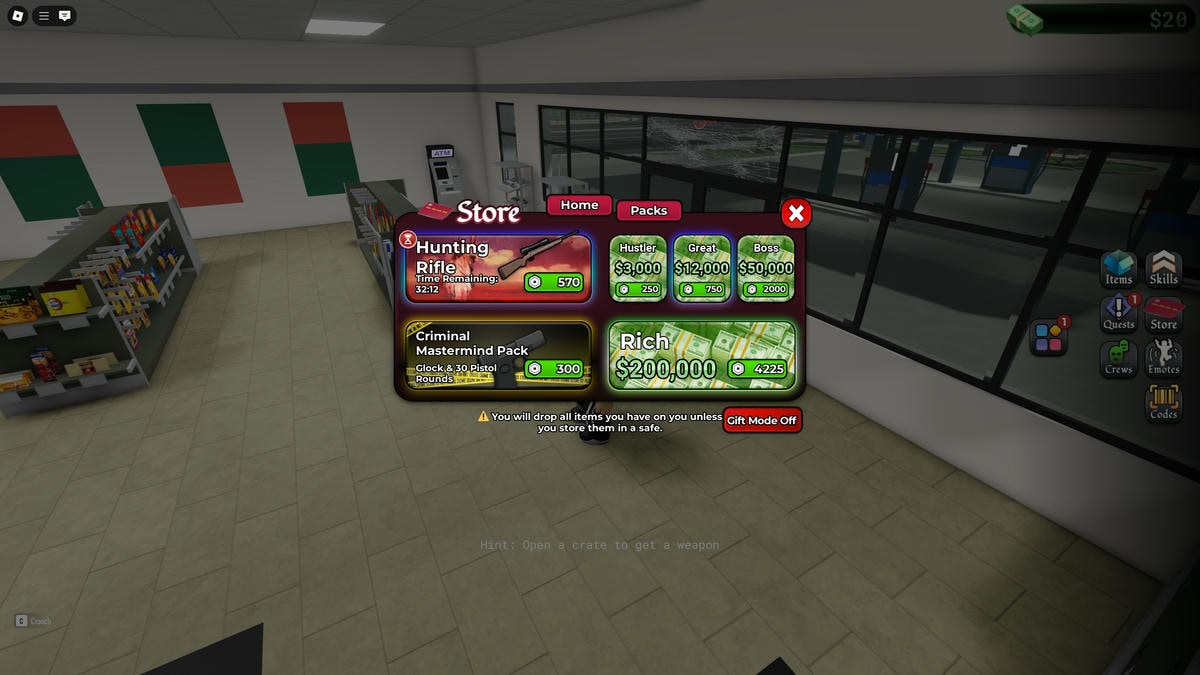 最後に、私は最後のブロックスピンでキャラクターの銀行に現金を追加する最も簡単な方法を維持しました。ただし、これには本当のお金を使う必要があります。したがって、ほとんどのプレイヤーはゲームにお金を使いたくないので、それは実行可能なオプションではありません。とはいえ、ロブックスを使うことで、ストアメニューからゲーム内の現金、武器、その他のアイテムを購入できます。
