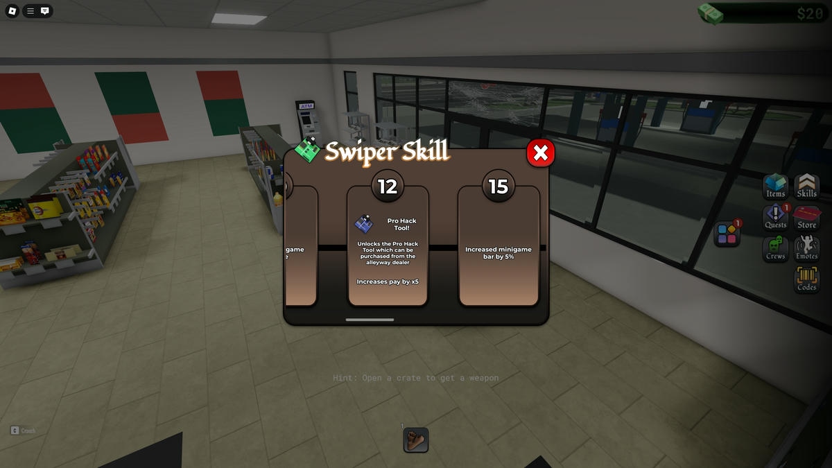 今、あなたはあなたのゲームを上げて、ハッキングされたATMを介して落とされた現金を大幅に増やすことができますスワイパースキルをレベルアップしますブロックスピン。右側の[メニュー]タブをクリックして、スキルリストを表示します。下にスクロールしてスウィーパーになると、スキルツリーが提供するボーナスが何であるかを確認できます(上の2番目の画像)。