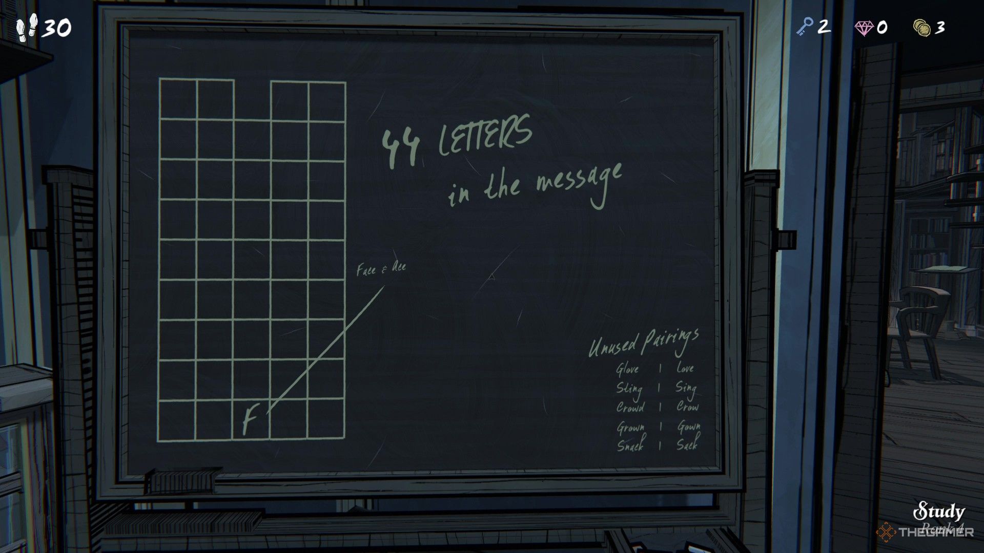また、研究を起草することもできます。内部のメモは、家のすべての部屋に手紙があることを明らかにし、まとめて、コードを公開します。