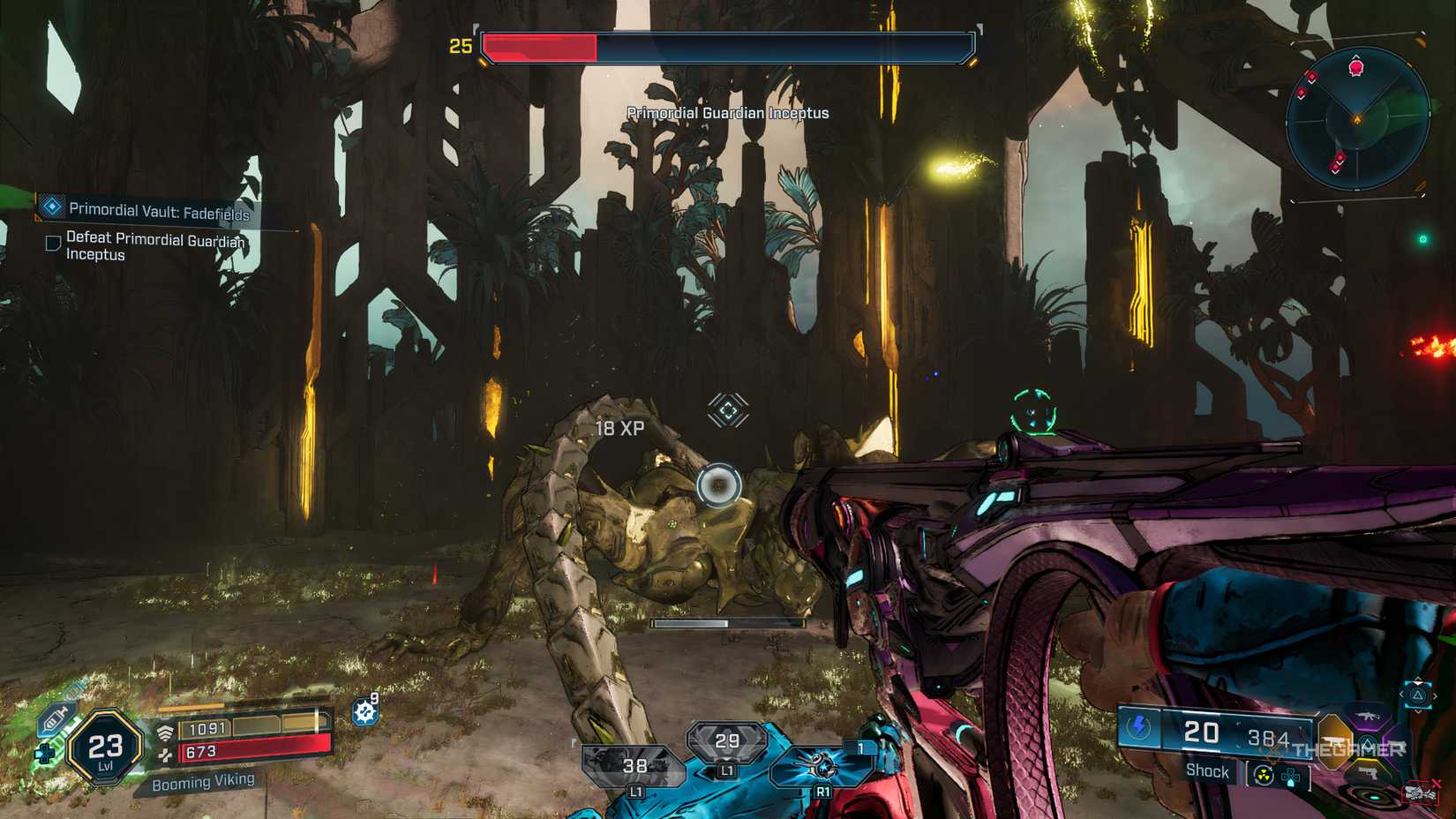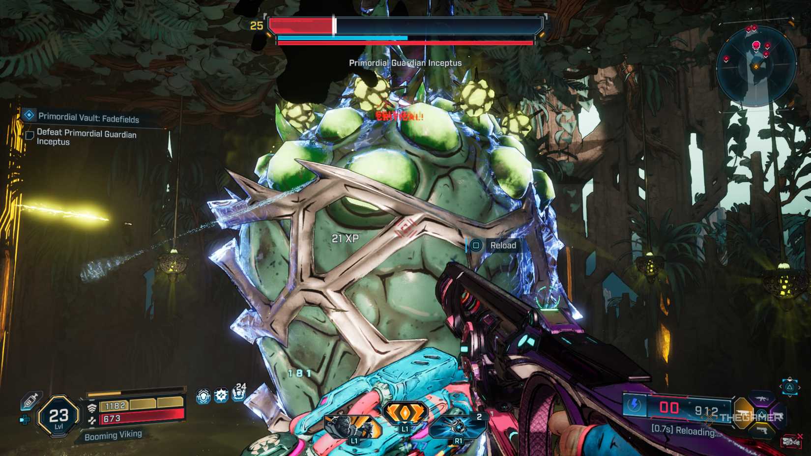 胞子の雲の攻撃を避けるために中距離を維持し、槍を止めて引っ張るのを避けるために側面に回るようにしてください。シールドで50%に達しますバー、inteceptusはそうします初めてそのcocooned状態に入ります。
