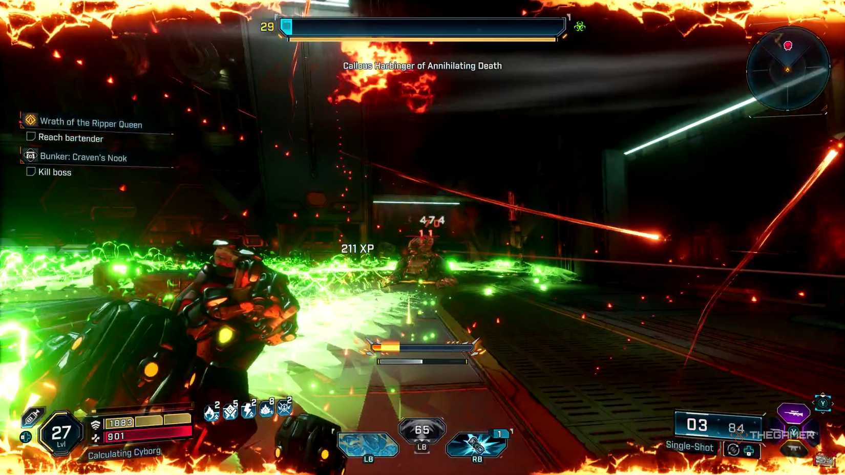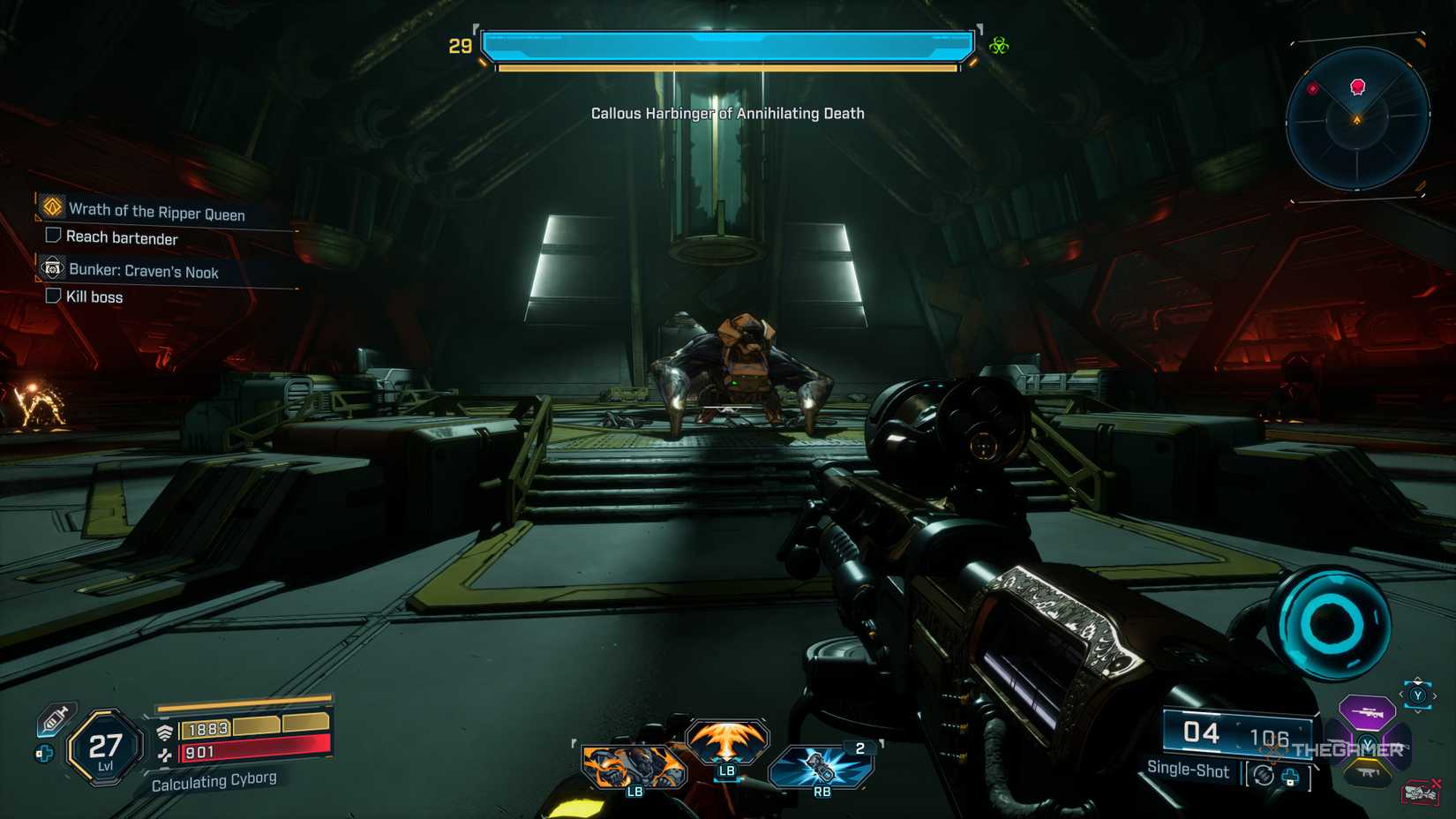 バンカー自体は、かなり標準的な国境地帯の運賃です。部屋から部屋へと進んで、敵の波を通して戦う(通気口と上にエレベーターシャフトを埋めます)、あなたが地域の上司に到達するまで - 消滅する死の冷酷なハーブリンガー。