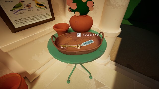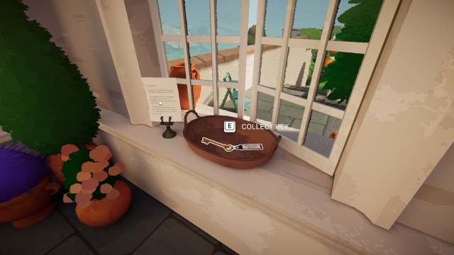 正しい道を歩むと、スタンドのボウルにキーがあり、ゲートハウスに出くわします。それを集めます。キーは次のとおりですエントランスガーデンキー、それを使用して邸宅にアクセスします。