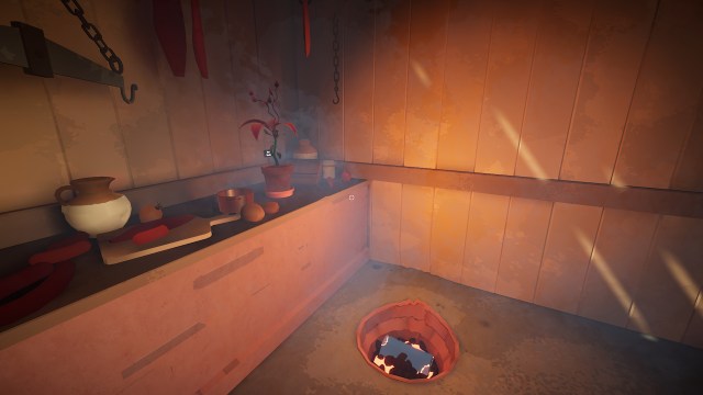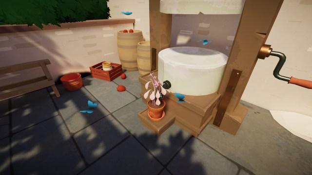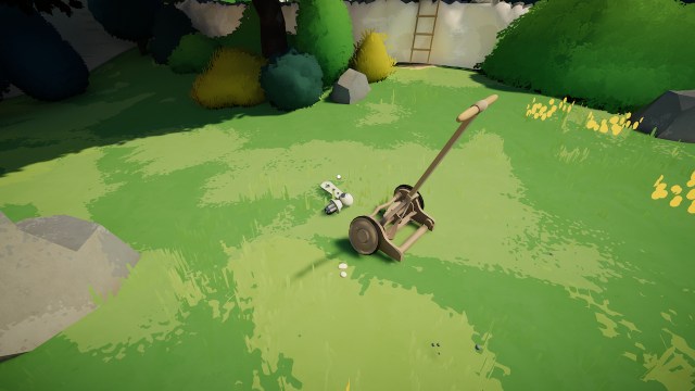 芝刈り機を見つけたら、ボートハウスへの通路の右側にある池の庭にある芝刈り機を見つけますその前にハンドルがあります。水滴のシンボルは、このハンドルを洞窟に接続します。