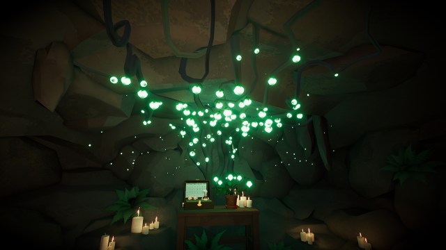 あなたがここにいる間、あなたは愚か者のエメラルドの苗木をつかむこともできます皿に置きます洞窟のテーブルの上。