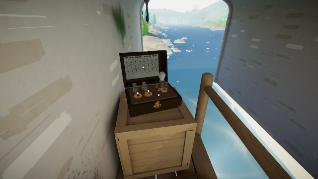 橋の下のボートハウスの電信ケースにモールスコードシートがあります。