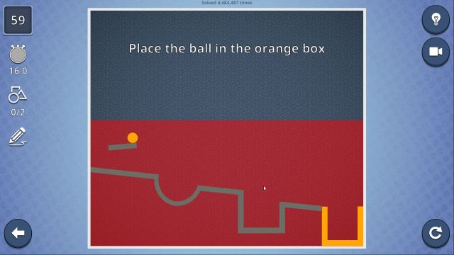- この挑戦的なレベルでは、ボールを左側から右側に移動するラックを作成する必要があり、ラックの重心を左側に移動する必要があります。ボールがラックに当たったら、画面の右側に大きな負荷を描き、棚を動かして左から右側に動くように棚を振ります。