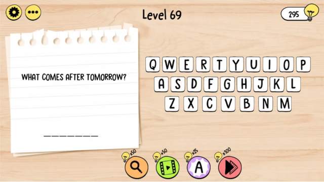 まだレベル61以降への道を進んでいる場合は、脳テストがあります。トリッキーな言葉レベル51-60の回答も同様です。また、さらに戻って、これまでのゲーム内のすべての質問に対する回答を読むことができます!しかし、あなたが前進する準備ができているなら、行きましょう!