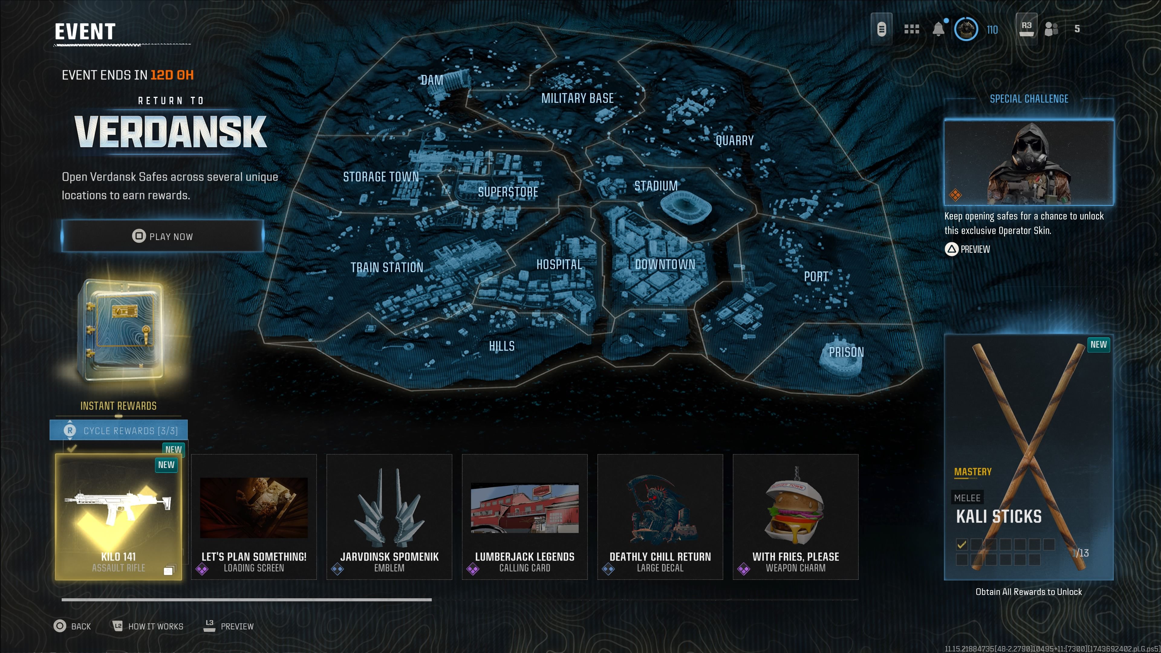 報酬はタイプに分けられます。最初のセットは、新規またはベテランのプレイヤーが取得することができ、イベントのリリース後にWarzoneを立ち上げるとすぐにロックを解除できます。これらの報酬には以下が含まれます。