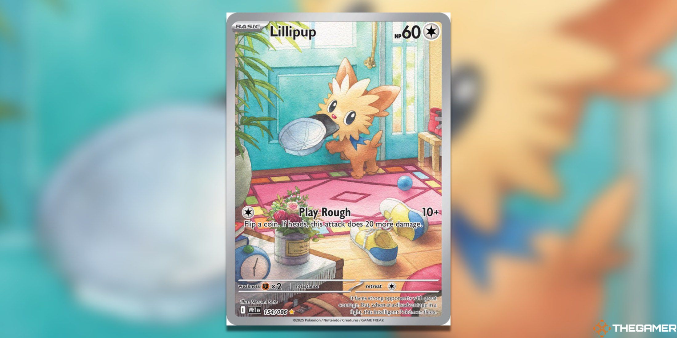 LillipupはEeveeの人気に近いものではないので、他のイラストレアのパックの間でこのカードが蛇行しているのを見るのは驚くことではありませんが、それはたくさんの愛に値します。リリプップの散歩への興奮は明確であり、そのエネルギッシュな性格は口の中の帽子を介して完全に反映されています。