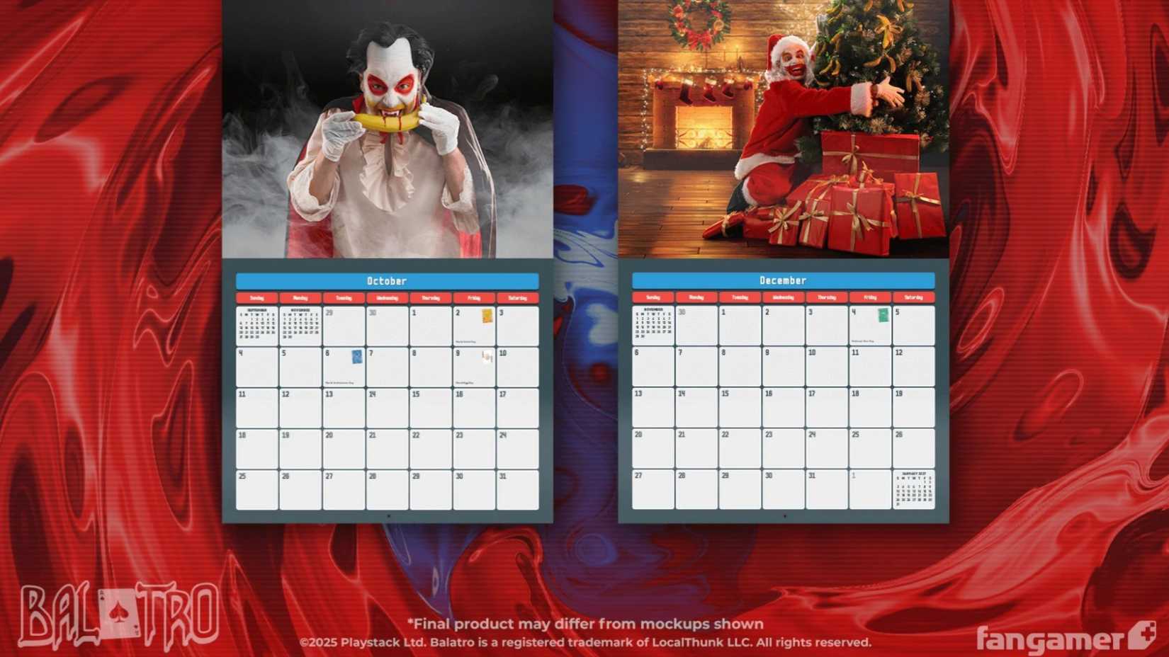 壁掛けカレンダーはもうあまり流行っていませんが、昨年ヒットしたインディーズゲーム『Balatro』は今でも、これまでプレイした中で最も魅力的なゲームの 1 つです。最近は開発者の LocalThunk からあまり話を聞いていませんが、来年いっぱいはゲームとそのマスコットのジンボへの愛を示すことができます。
