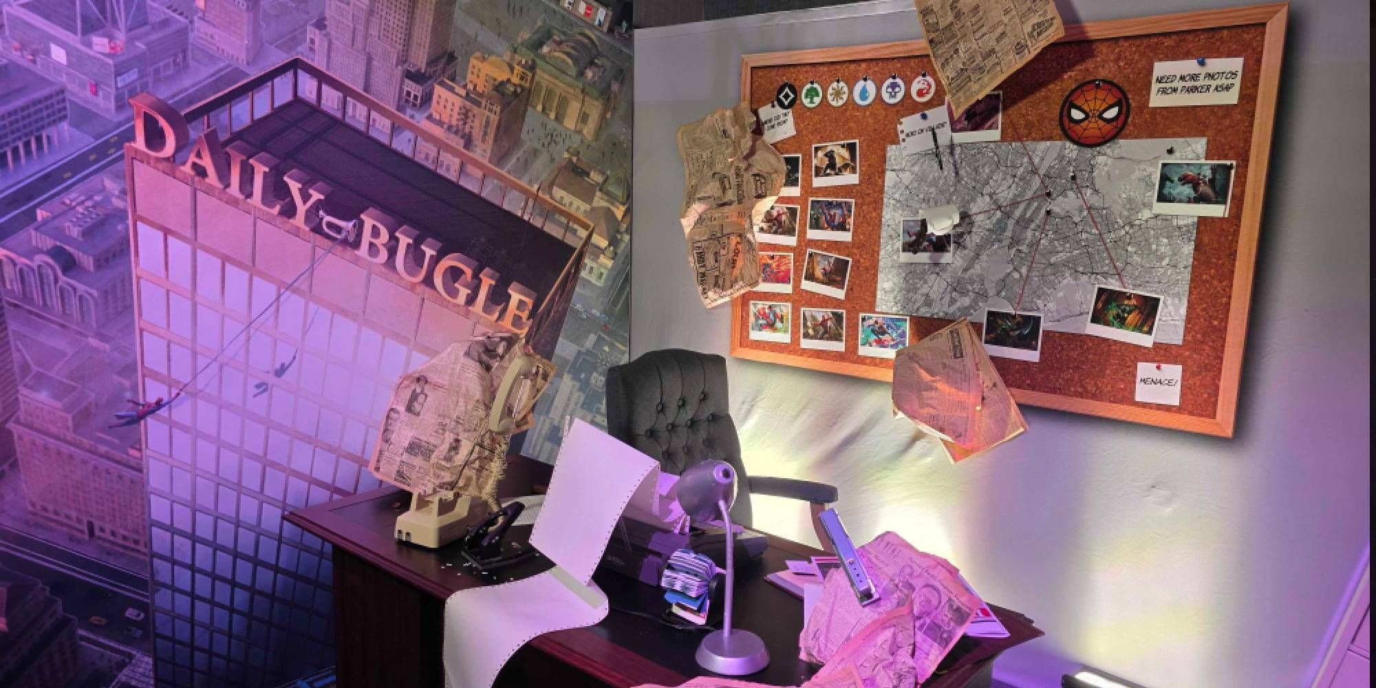 出発する前に、出席者は毎日のラッパ自身の中に向かい、ニュースオフィスのレプリカを探索し、J。ジョナジェイムソンの机に座っている写真を撮ることができました。出口の近くにいくつかのクールな写真撮影もありました。1つは落書きに満ちた路地にあなたを置き、もう1つは巨大なスパイダーマンのマジックカードのアートワークに入れました。